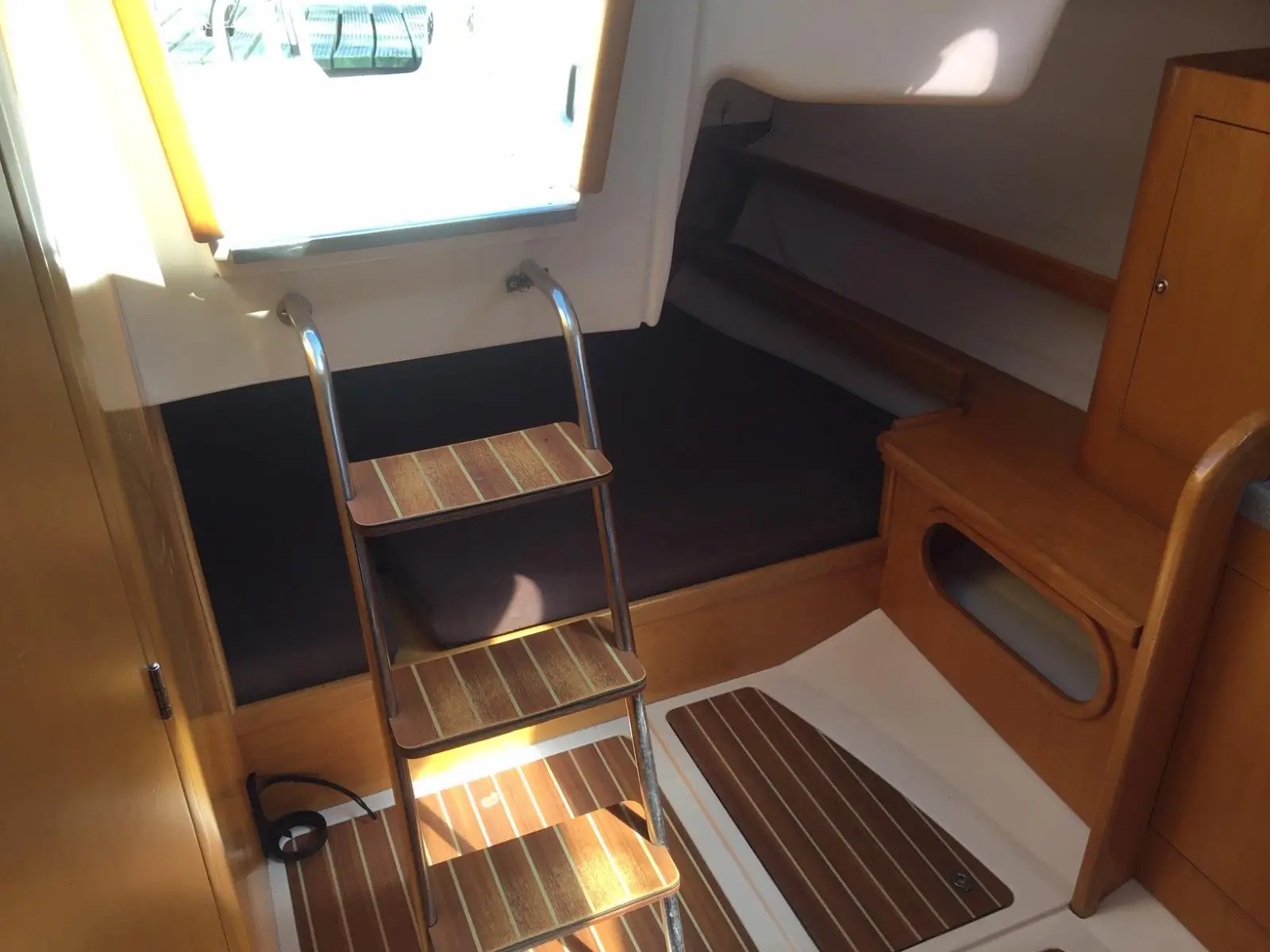 • Kompletne wyposażenie kambuza: 2 garnki, patelnia, durszlak, chochelka, sztućce, nóż do chleba, kubki, talerze, deska do krojenia, miski